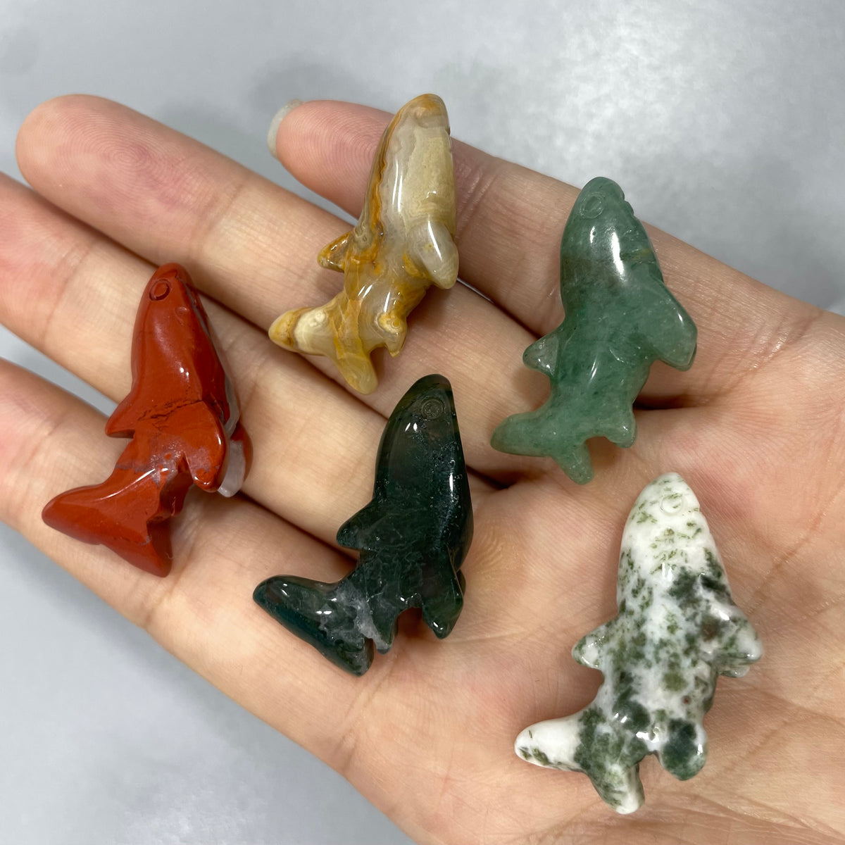 Mini Shark Natural Stone Carvings Confetti Scoops - green aventurine