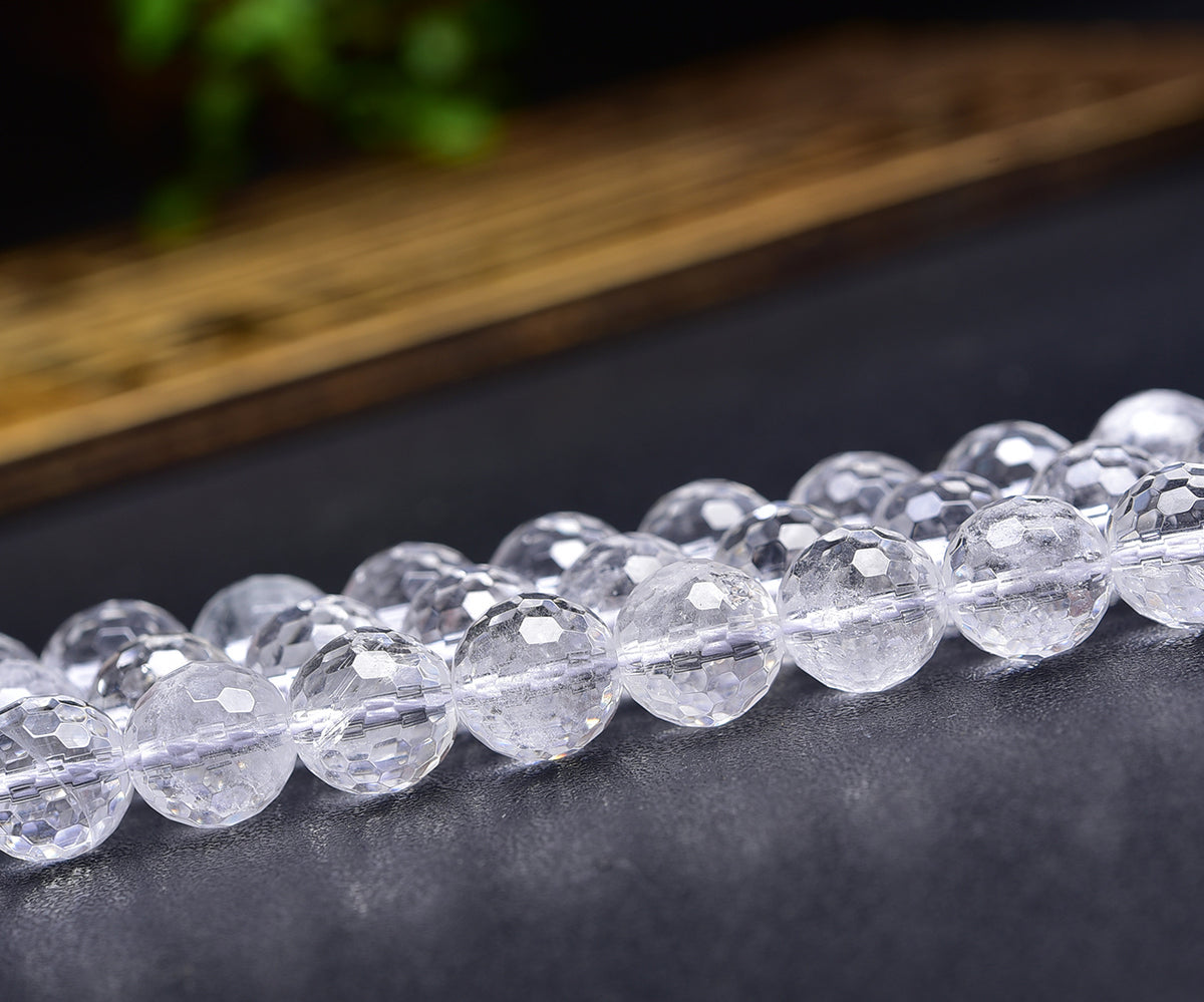 Natural Faceted Clear Quartz 128 Faces Cut Beads Strands Loose Beads - 10mm