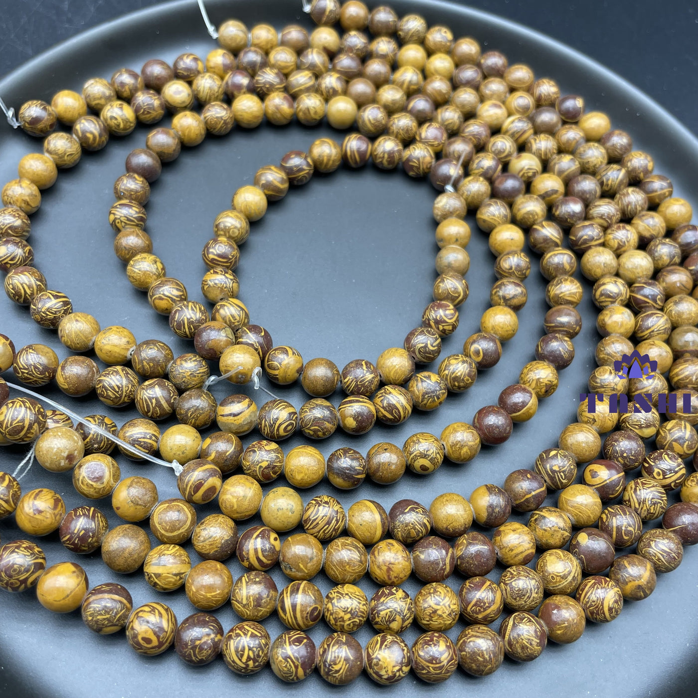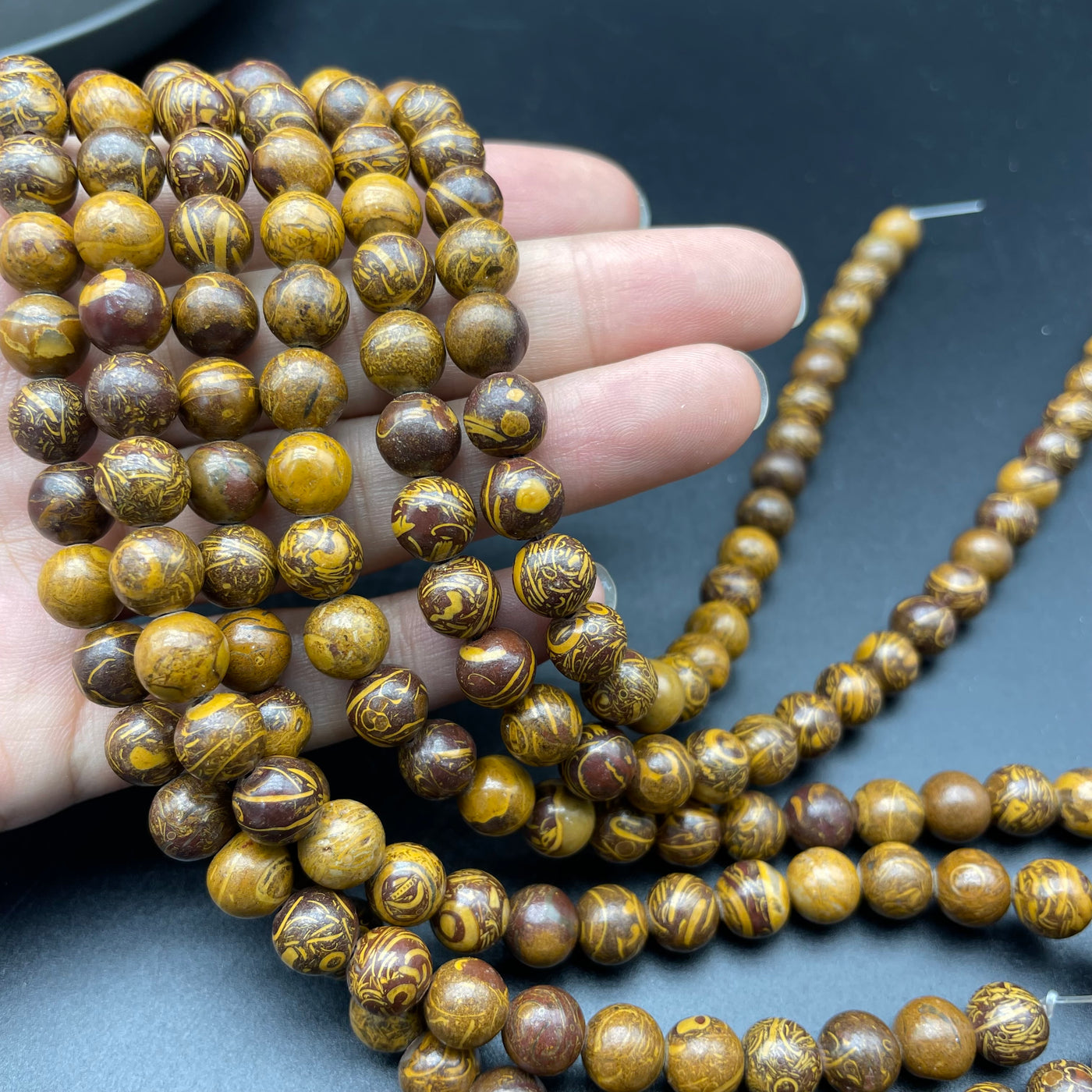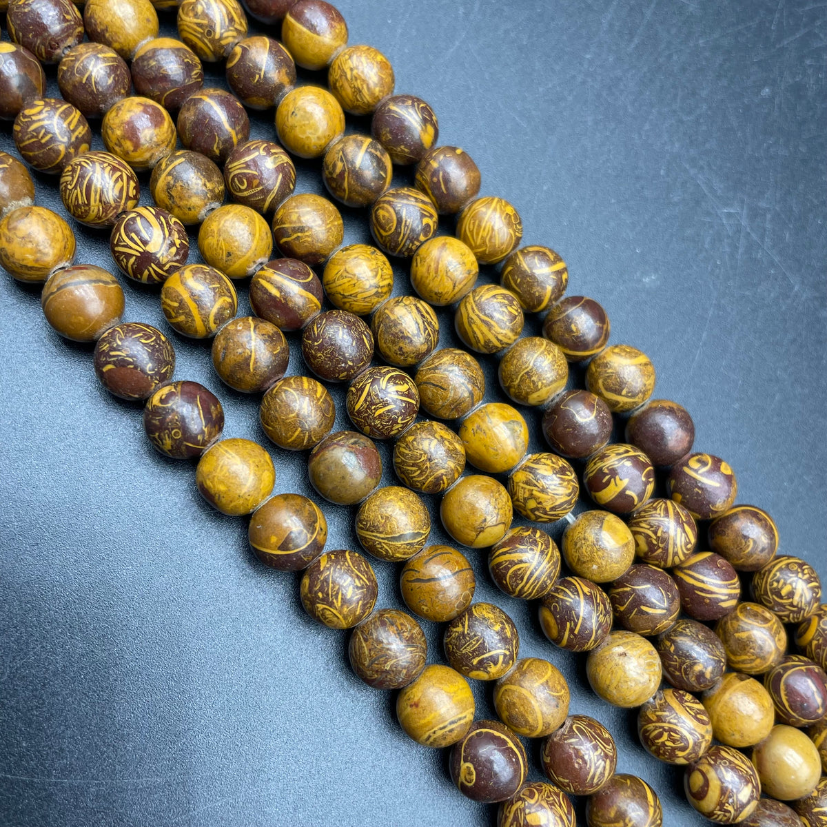 Calligraphy Jasper Beads Strands Loose Beads Jewelry DIY Bracelets - 8m m