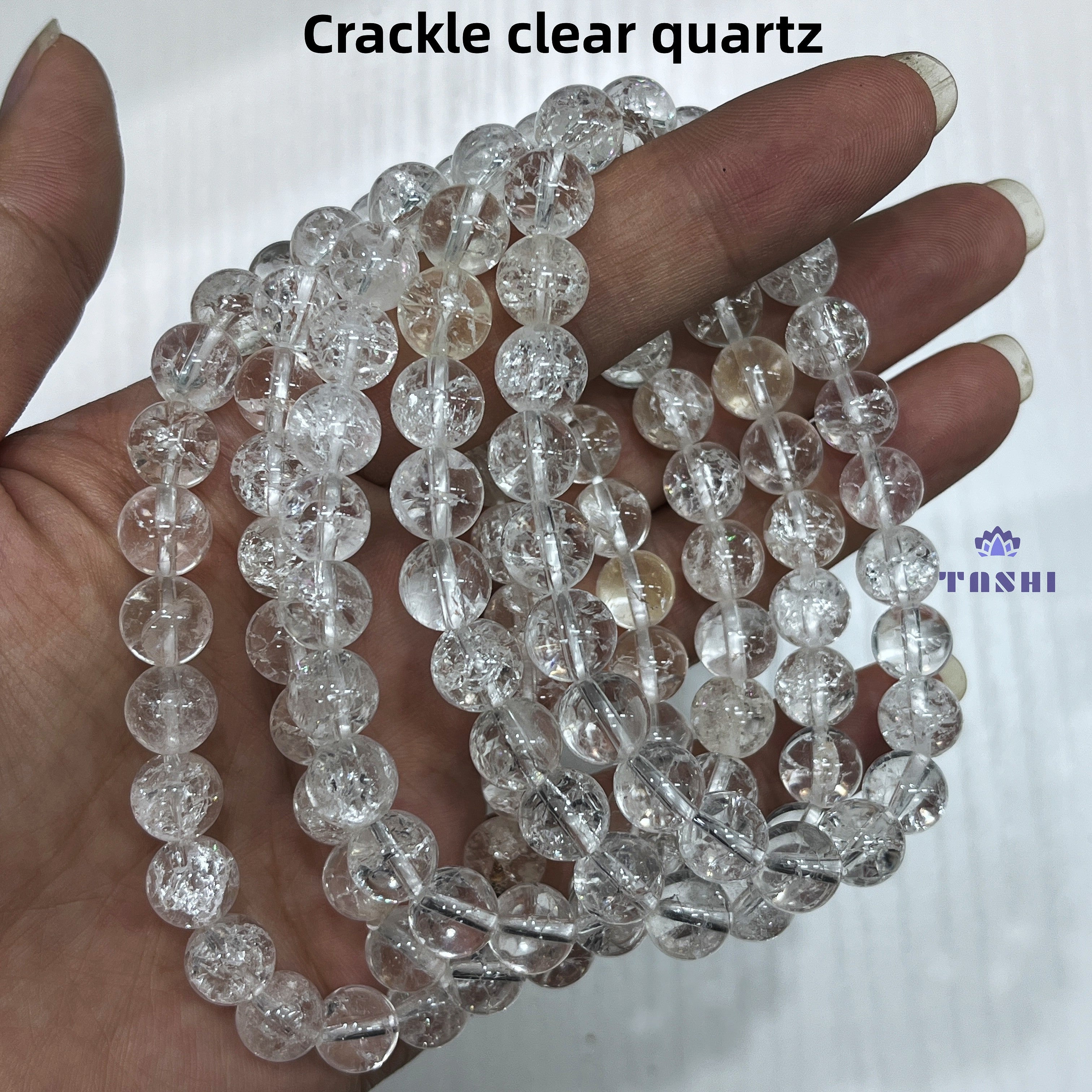 8mm Crackle Clear Quartz Bracelets Round Beaded Bracelets Stretch Beads