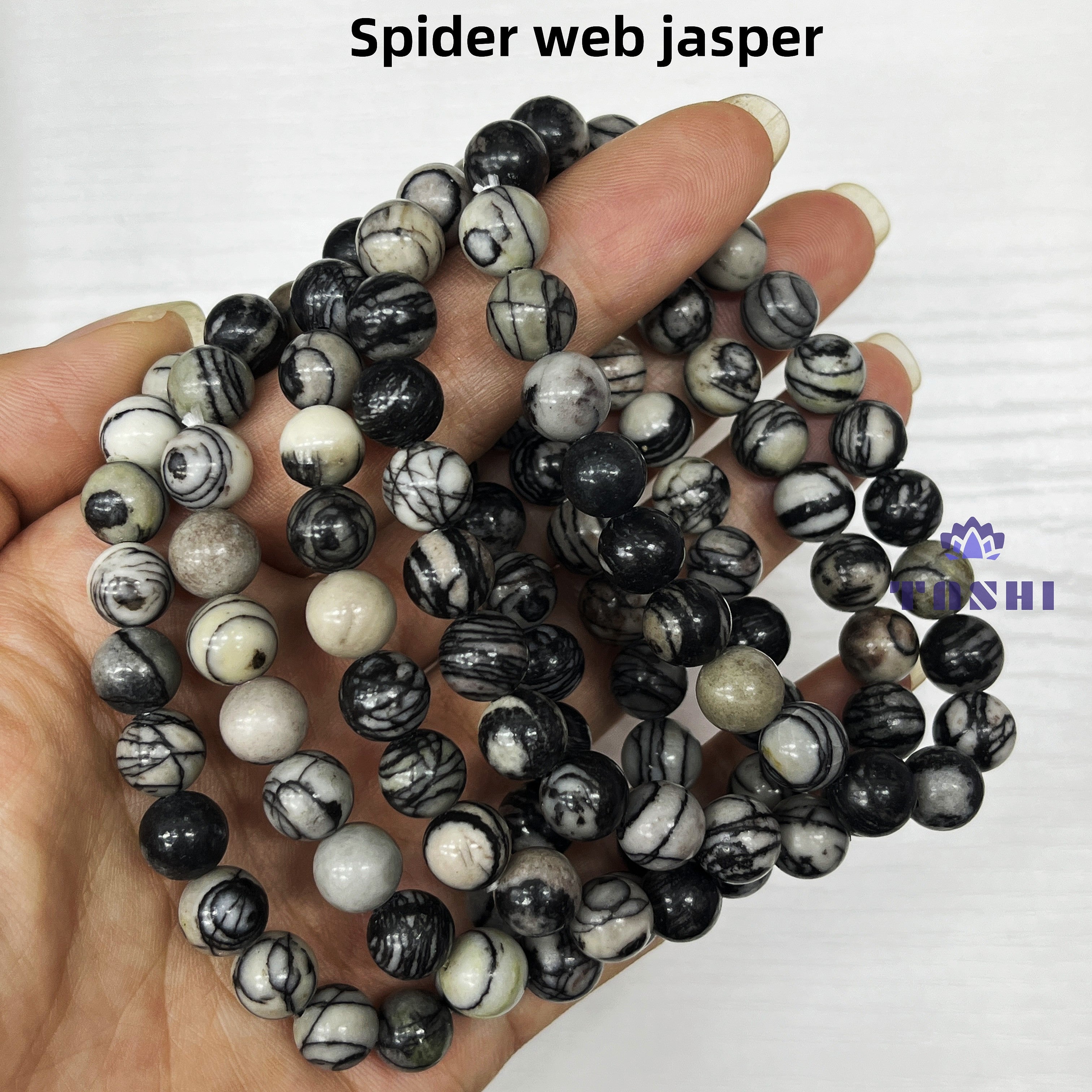 8mm Spider Web Jasper Bracelets Round Beaded Bracelets Stretch Beads