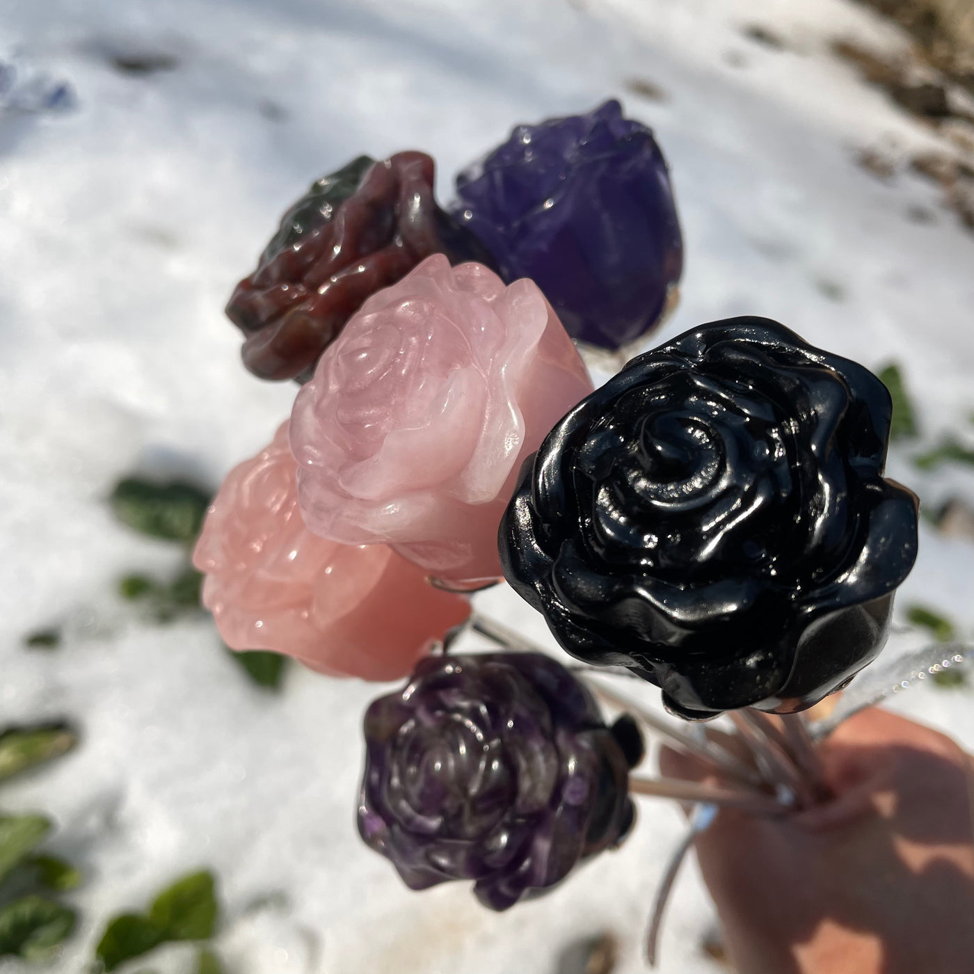 High Quality Crystal Roses on Stem Flowers Natural Crystal Carving - 5 pcs mixed material