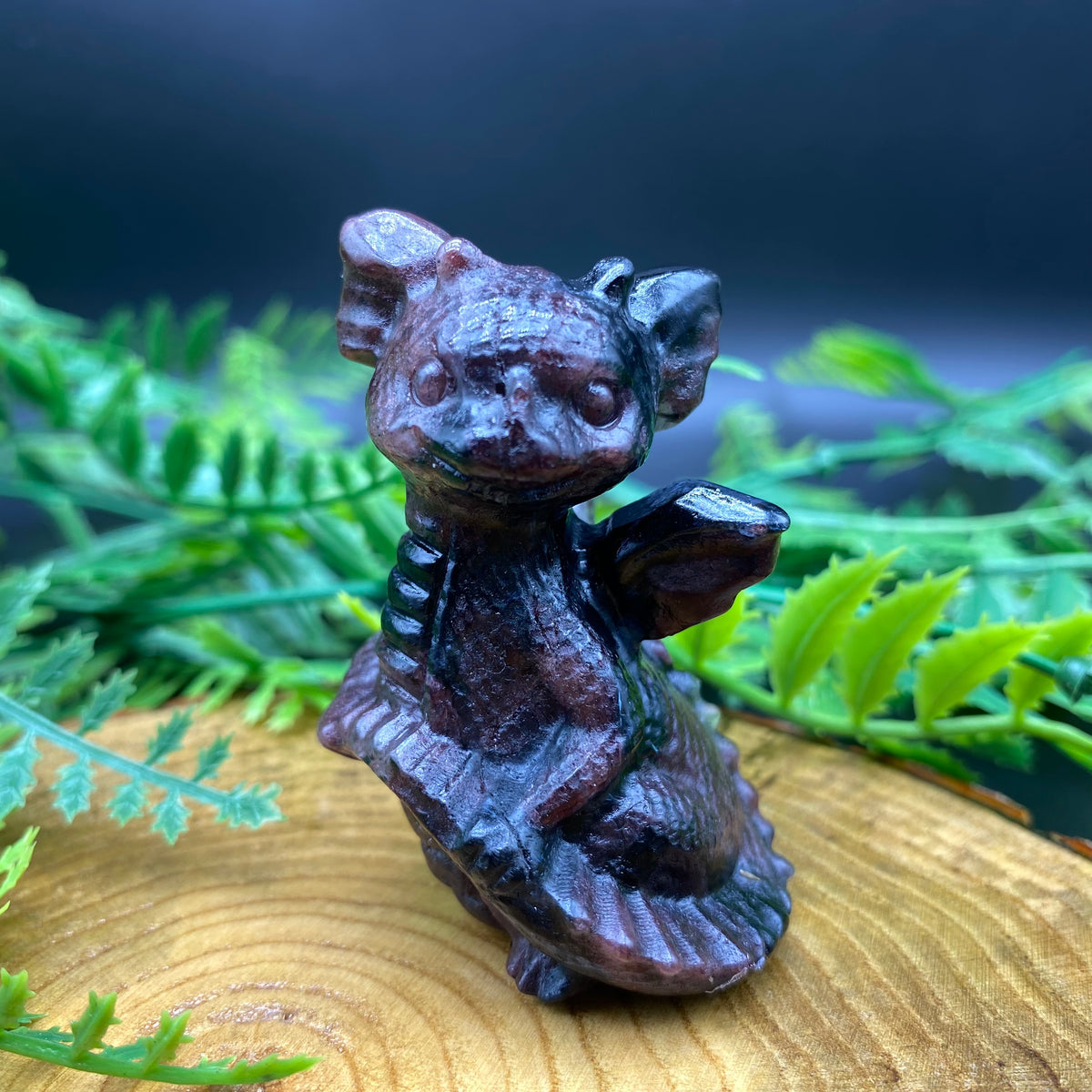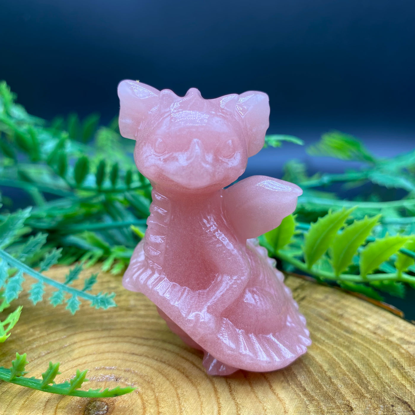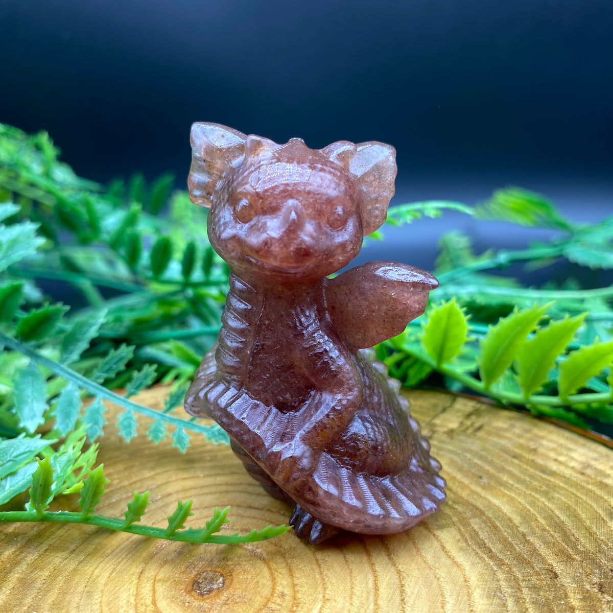 6CM Cute Dragon Holding Tail Carving Natural Crystal Statue - Strawberry quartz