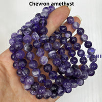 8mm Chevron Amethyst Bracelets Round Beaded Bracelets Stretch Beads