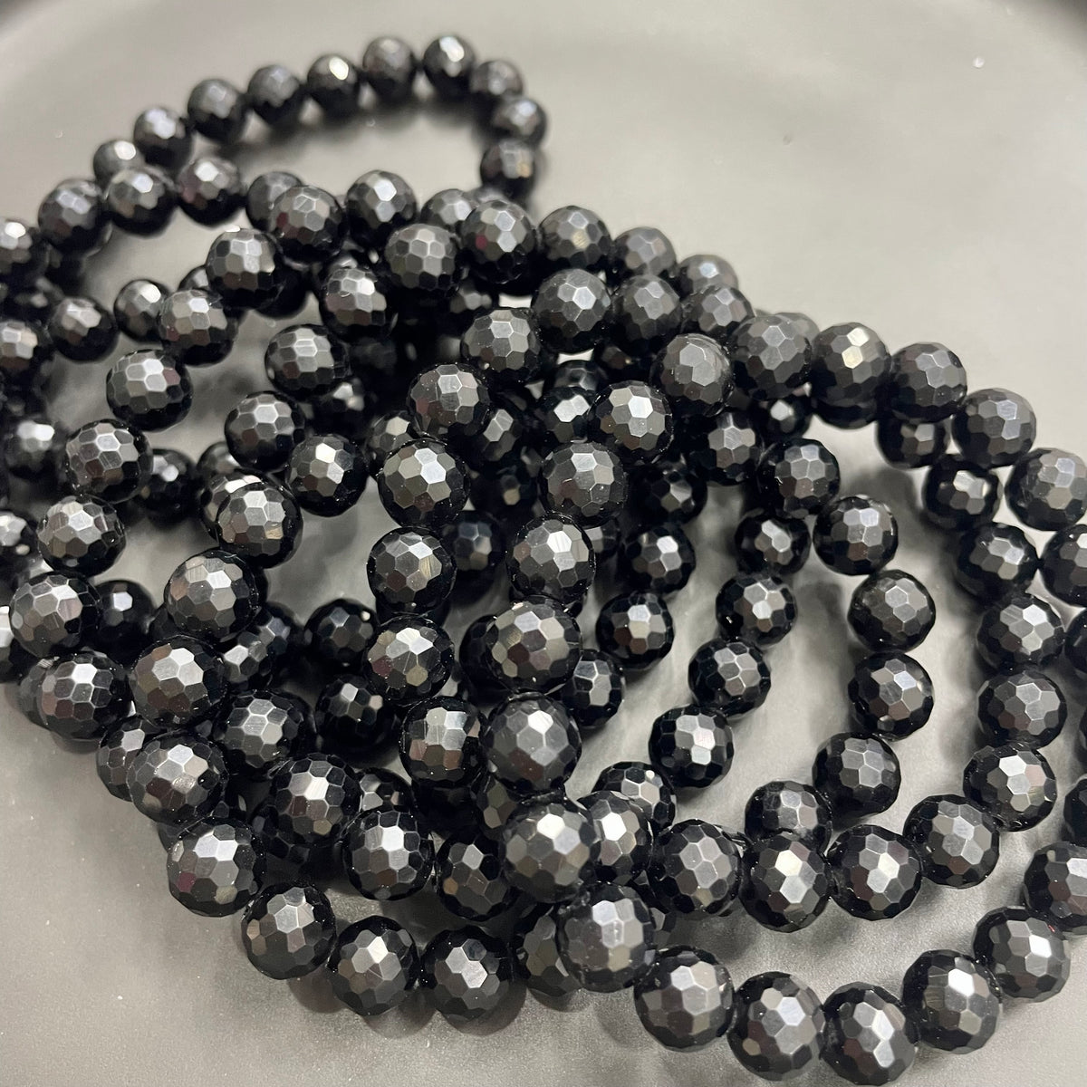 8mm Faceted Black Obsidian Bracelets Round Beaded Bracelets Stretch Beads