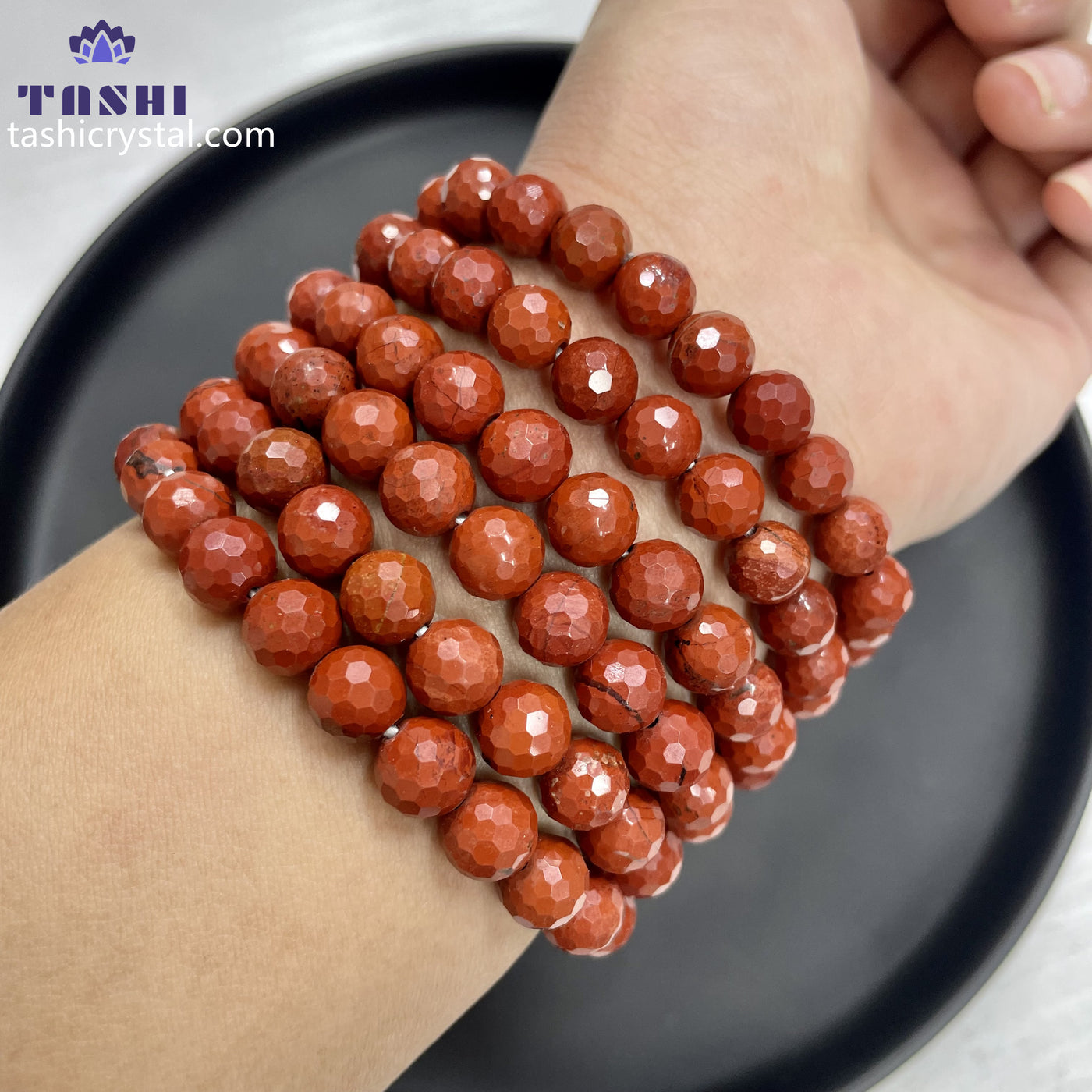8mm Faceted Red Jasper Bracelets Round Beaded Bracelets Stretch Beads