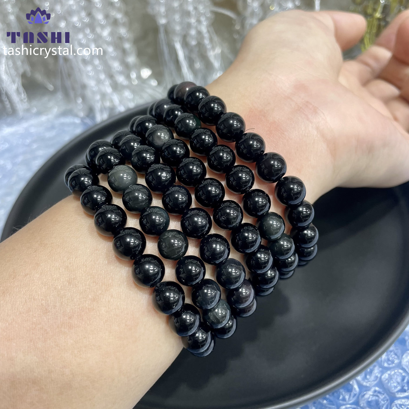 8mm Rainbow Sheen Obsidian Bracelets Round Beaded Bracelets Stretch Beads