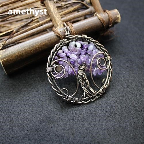 Wire Wrapped Crystal Chips Tree Pendant Wholesale - amethyst