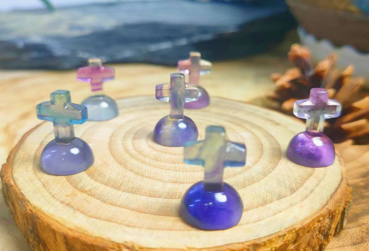 Mini Fluorite Cross Tombstone Natural Crystal Carvings Wholesale