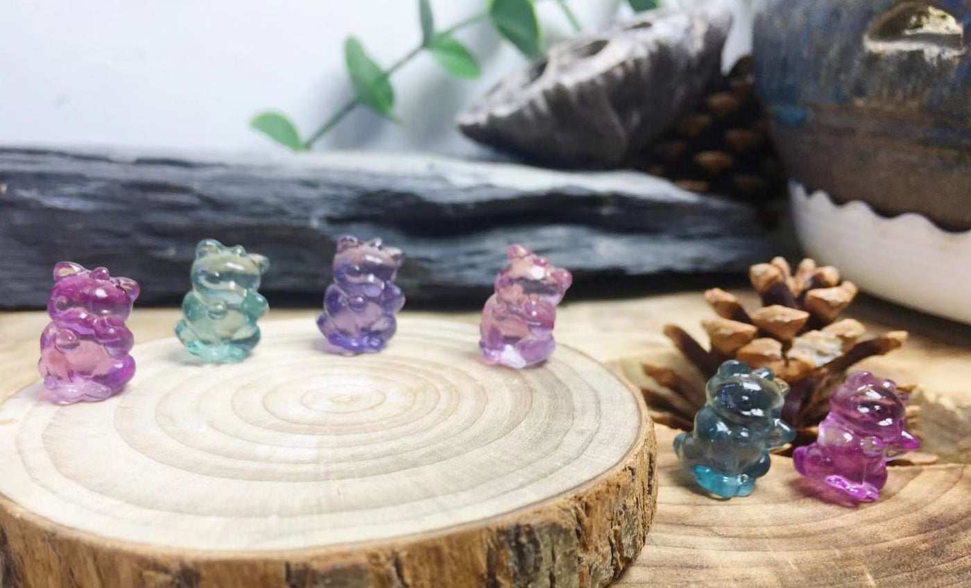 Mini Fluorite Fortune Cat Natural Crystal Carvings Wholesale