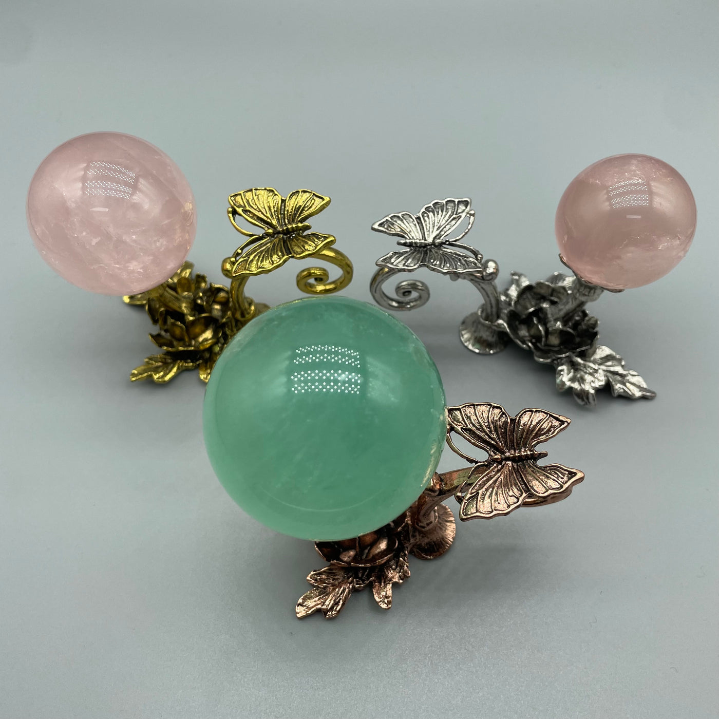 Flower with Butterfly Metal Crystal Sphere Holder Ball Stand Decoration