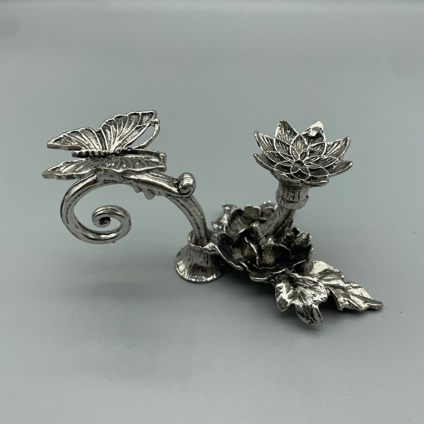 Flower with Butterfly Metal Crystal Sphere Holder Ball Stand Decoration - silver